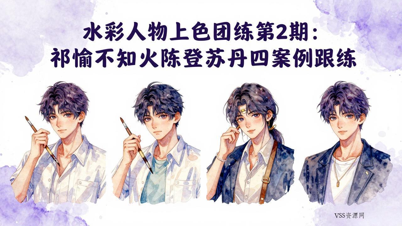 本课程通过多个实战案例系统教学水彩人物上色技法。课程从课前准备入手,以祁煜上色、不知火上色、陈登上色、苏丹上色等完整案例为主线,每两周穿插作业反馈与答疑环节,手把手带领学员掌握水彩人物头像的上色技巧、色彩搭配、光影处理等核心技能。通过4个周的系统练习与针对性指导,帮助学员从基础到进阶,逐步提升水彩人物创作能力。